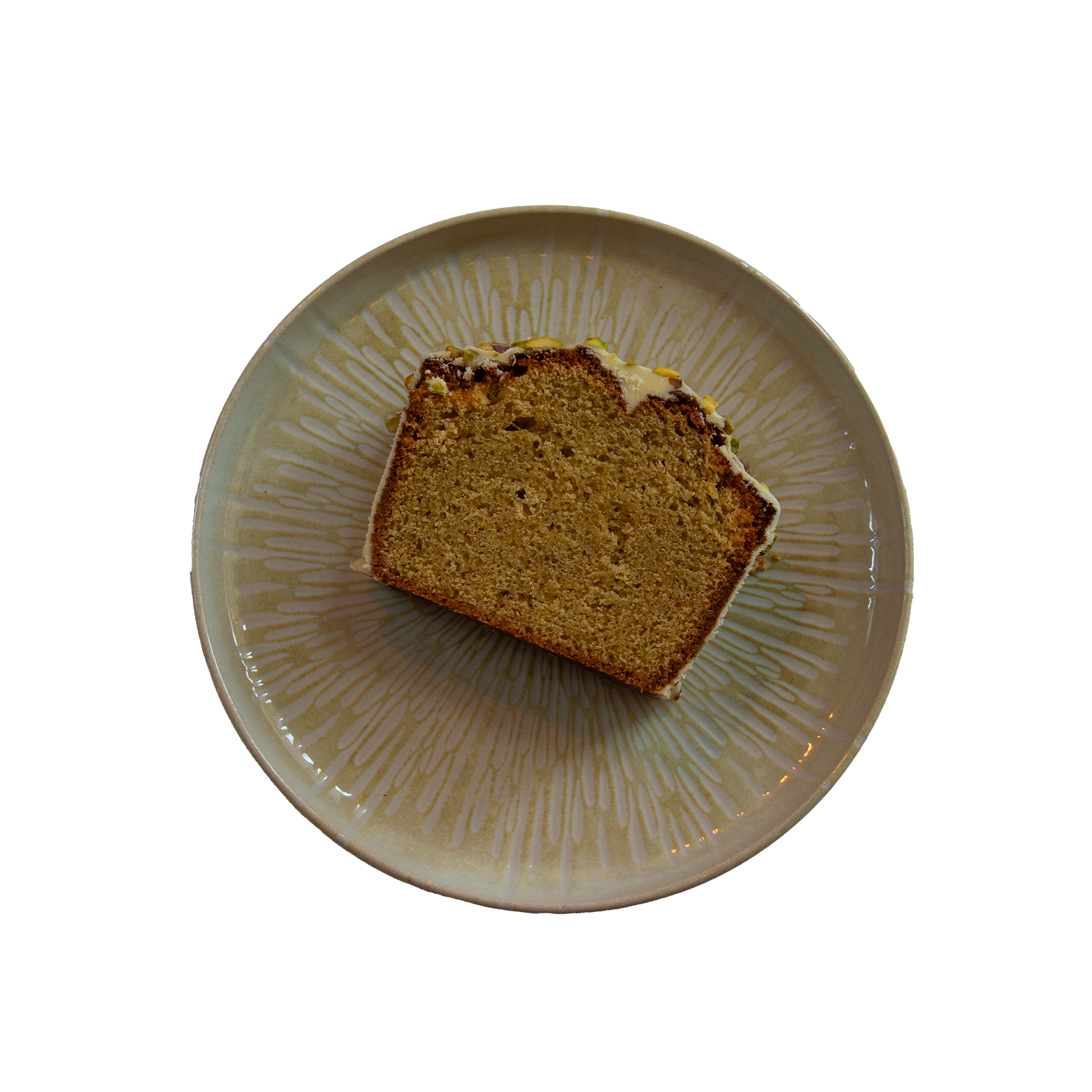 Pistache, chocolat blanc, glaçage pistache.